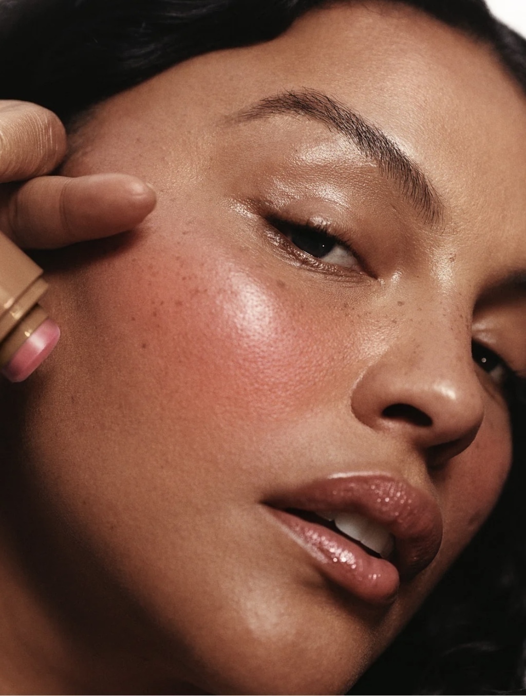 Um pouco de blush para um pouco de rubor. Nosso blush em creme para viagem desperta bochechas e lábios com um rubor acetinado e difuso que derrete suavemente e permanece o dia todo. É uma fórmula leve que hidrata a pele para deixar bochechas macias e deixa um acabamento brilhante sem sensação oleosa.